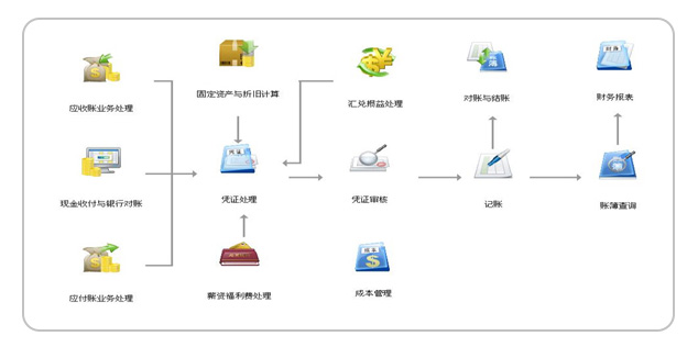 - 支持企業(yè)中不同角色人員輕松實現(xiàn)從業(yè)務處理到財務核算,再到多維度的報表分析的全過程管理